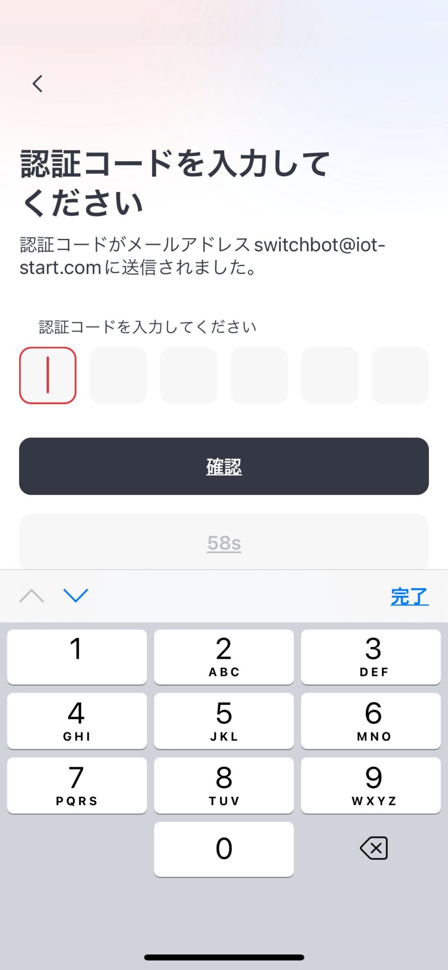 登録したEメール宛に6桁の認証コードが送られてきますので認証コードを入力しましょう。